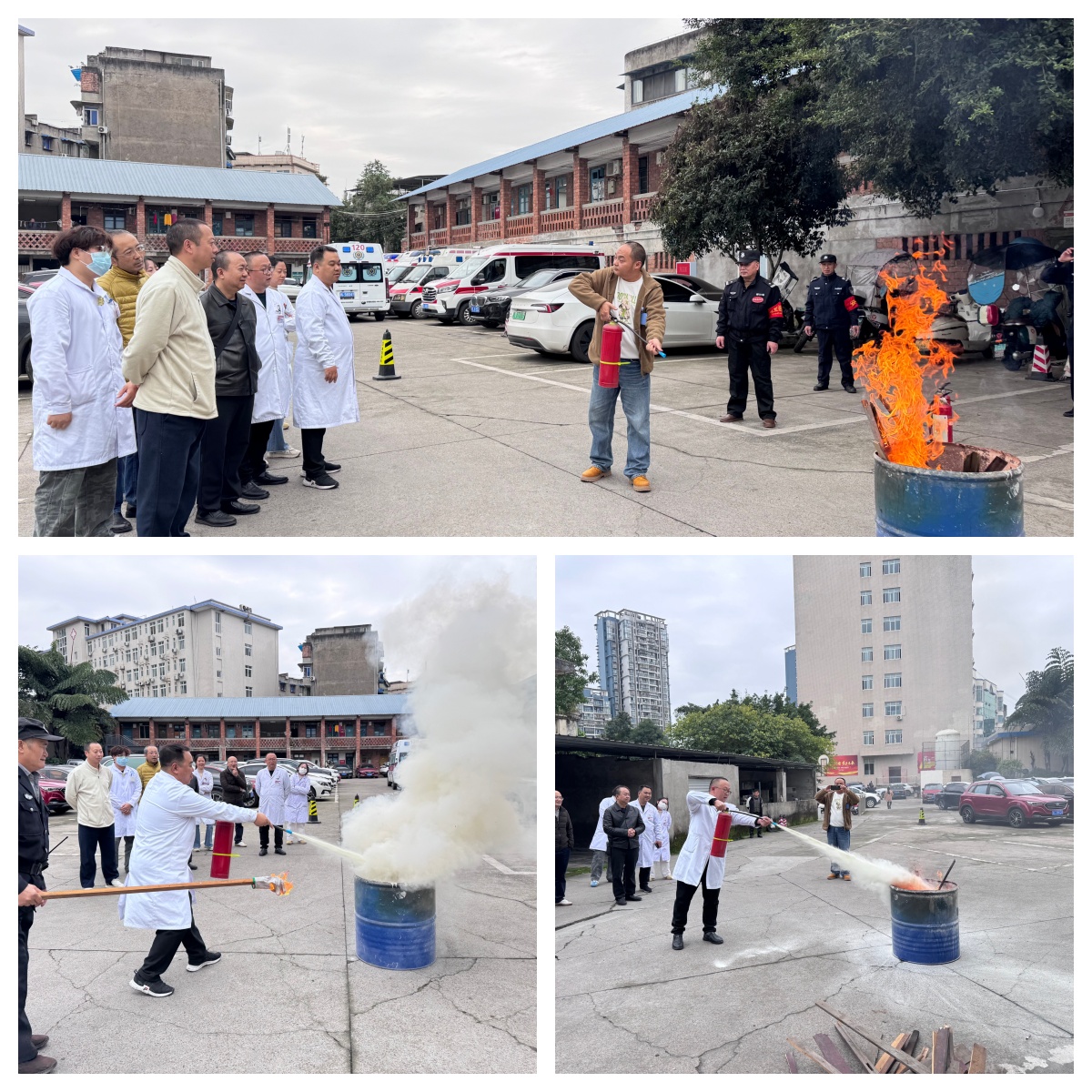 隨后在17時,滅火實操演練在醫(yī)院后勤辦公區(qū)停車場進行。參訓人員在統(tǒng)一指揮下,依次操作滅火器材,親身體驗撲救初起火災的全過程。通過實際操作,大家進一步鞏固了所學消防知識,有效提升了在緊急情況下的實戰(zhàn)應對能力。